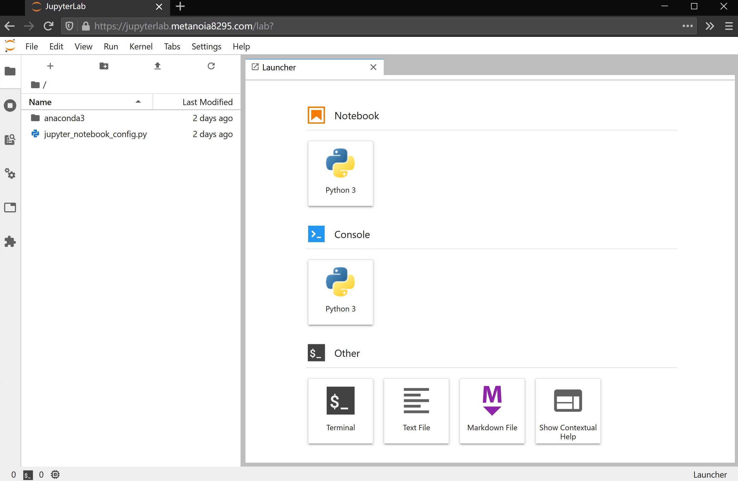首次部署完的域名为:https://jupyterlab.metanoia8295.com,效果如下: