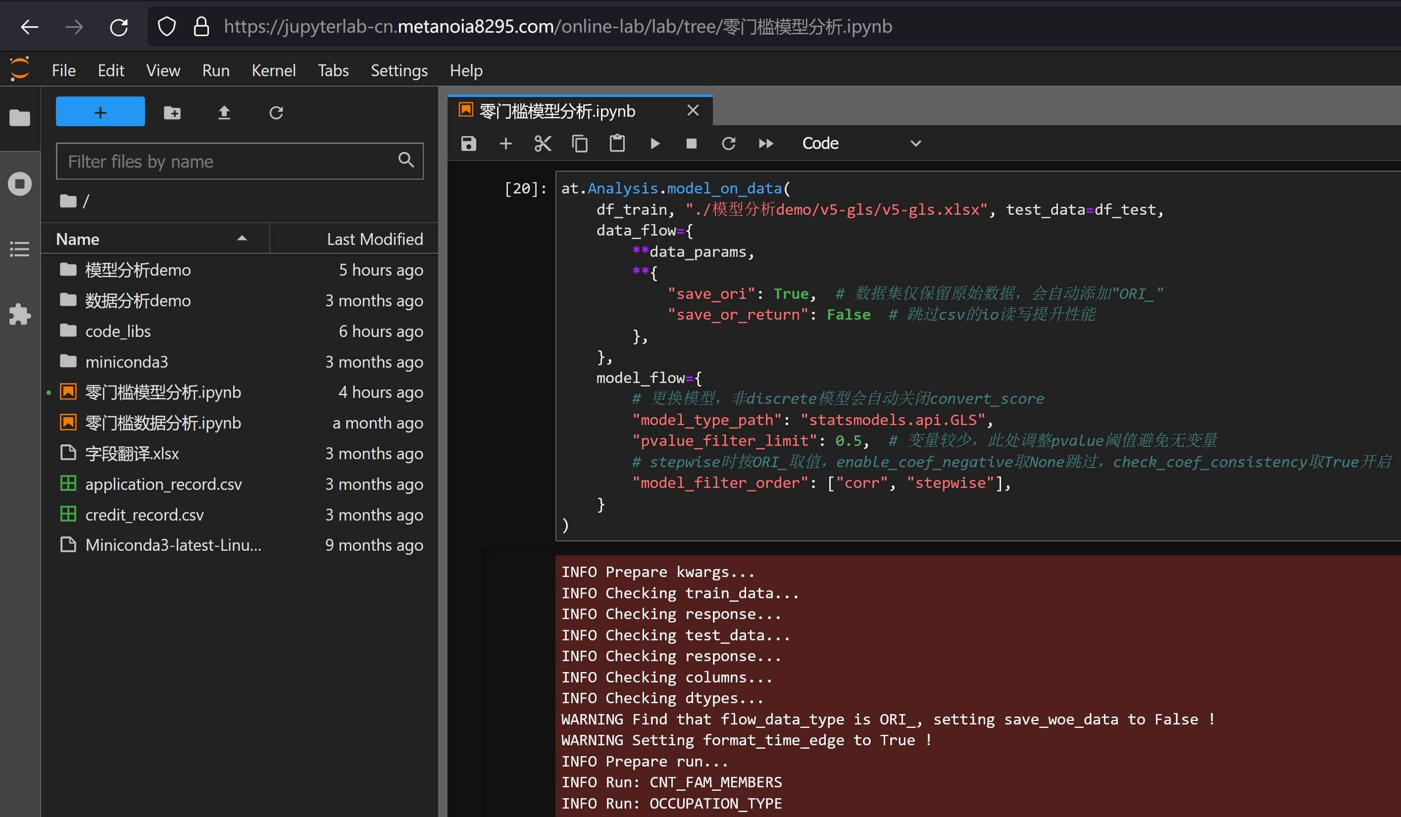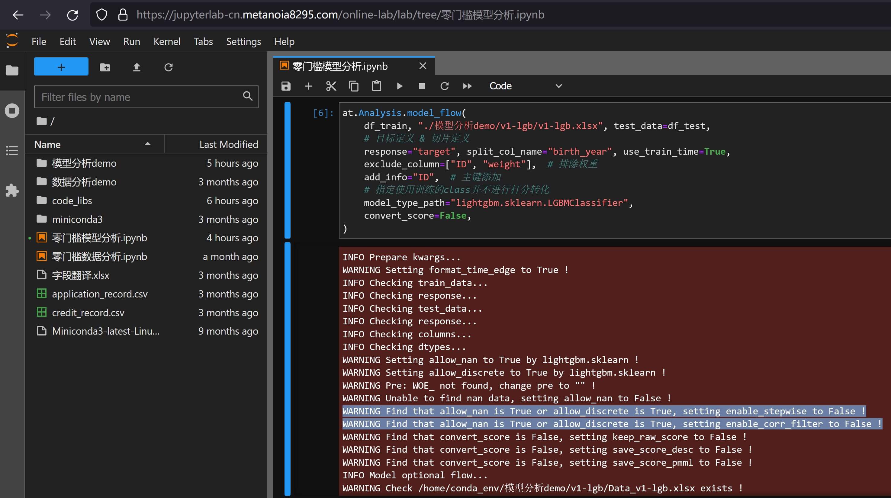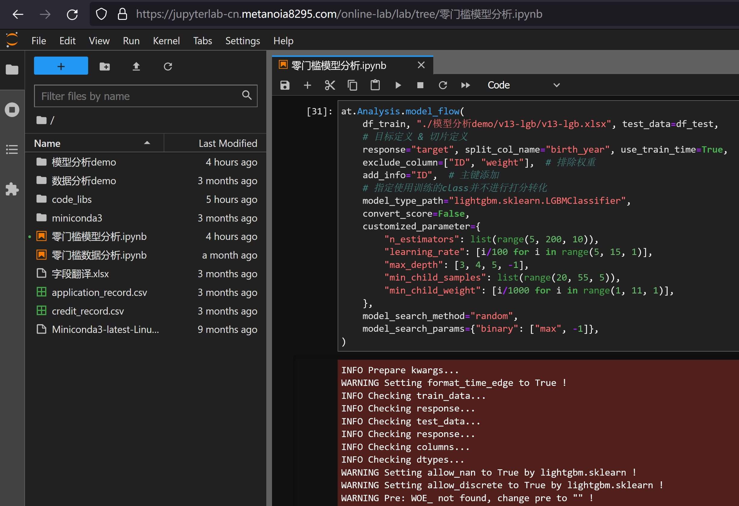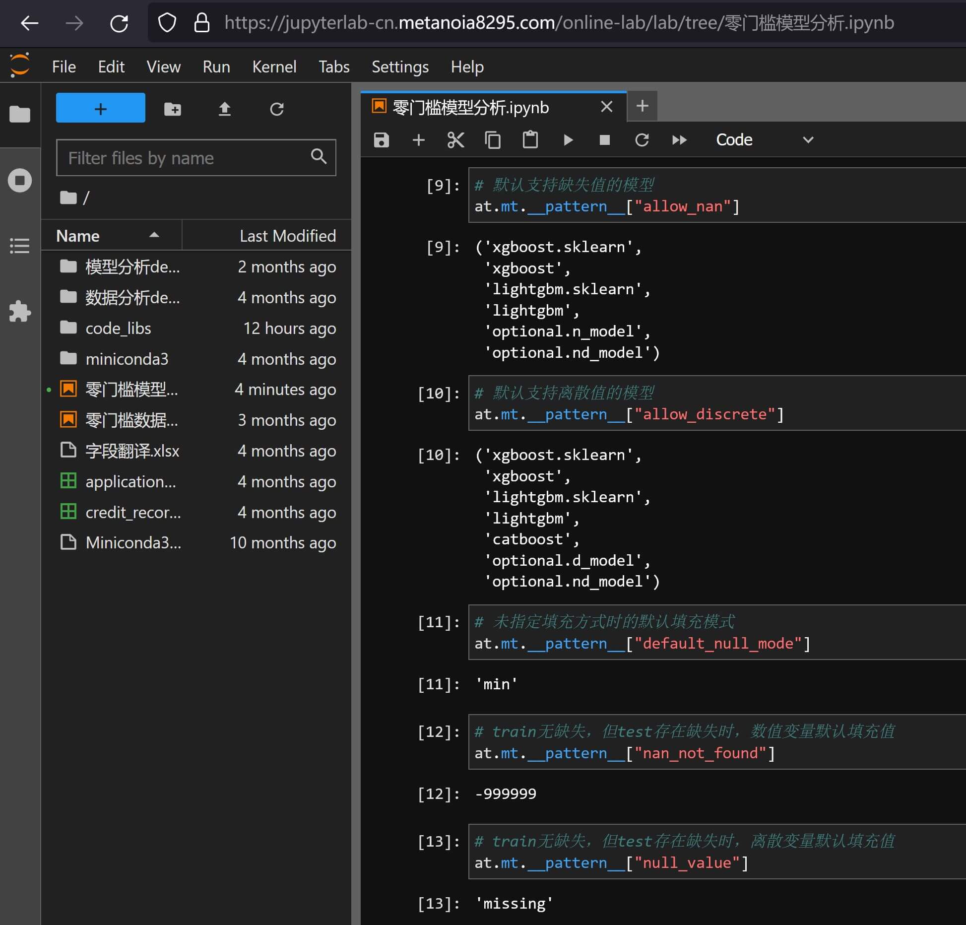 建模案例可见本节1.4 案例展示中的:1.4.1 评分卡建模1.4.2 机器学习建模,另外,写这一篇章时升级了jupyterlab的环境,启用了新的cdn并使用nginx路径分流,所以本文的截图中看到的web路径会和上一章不一样