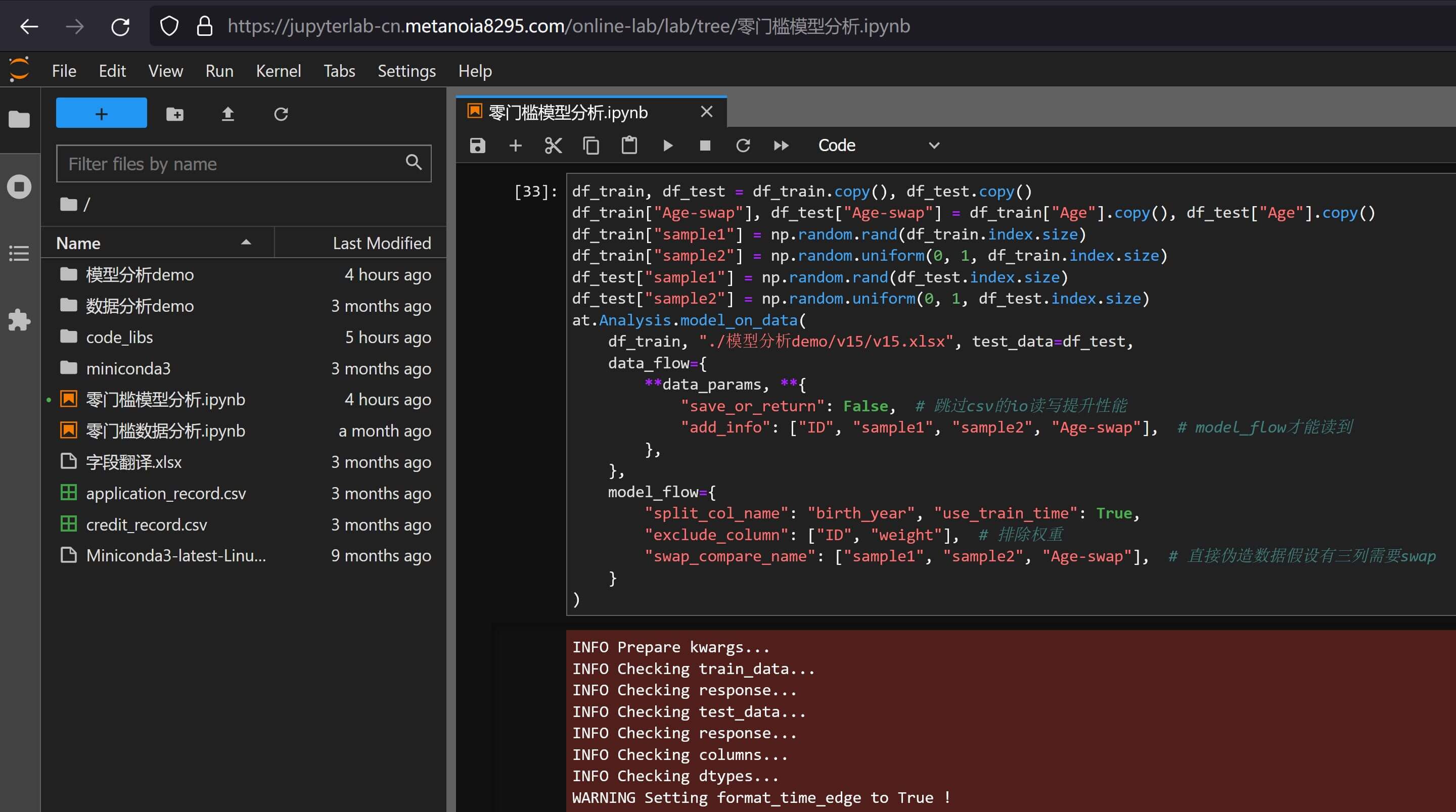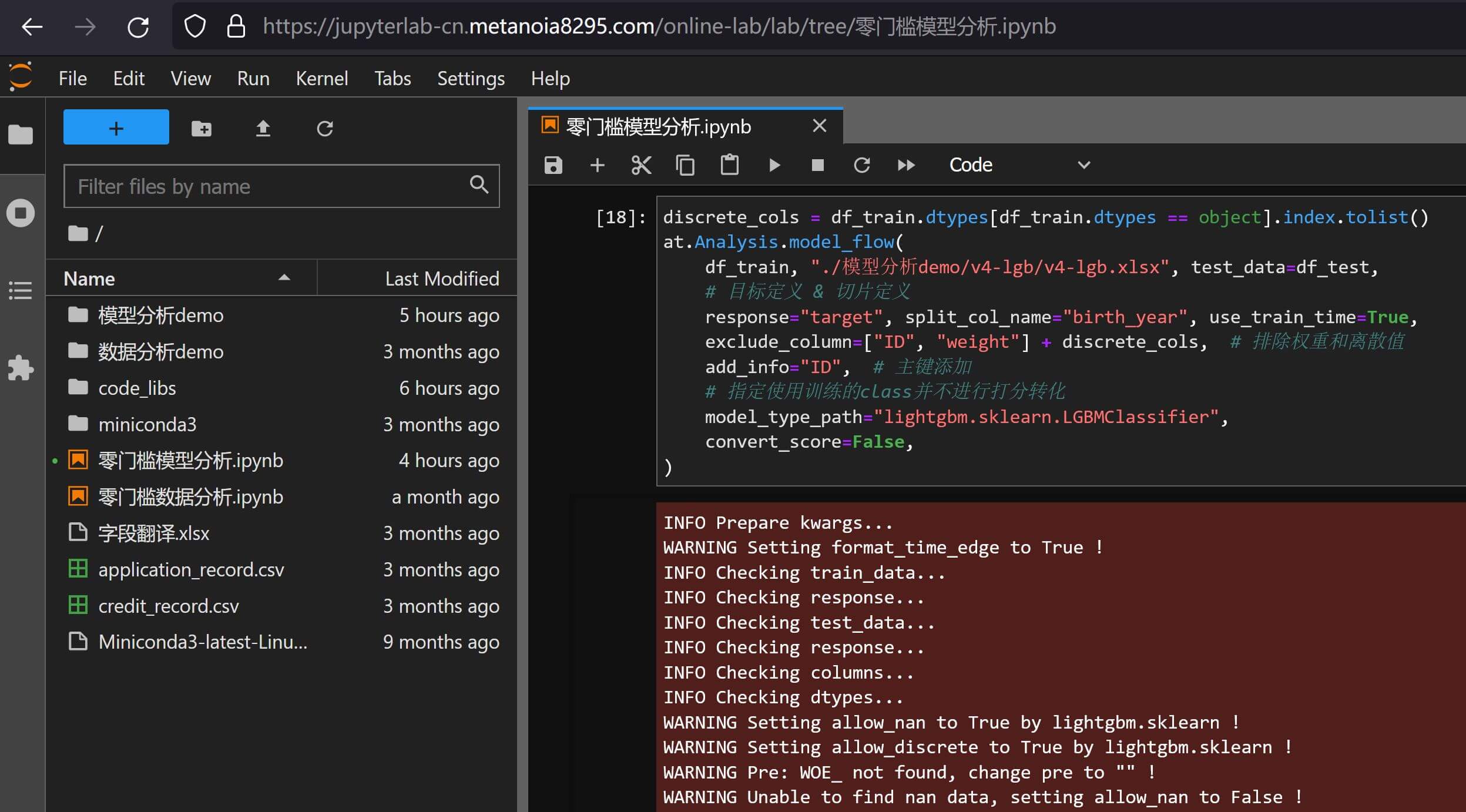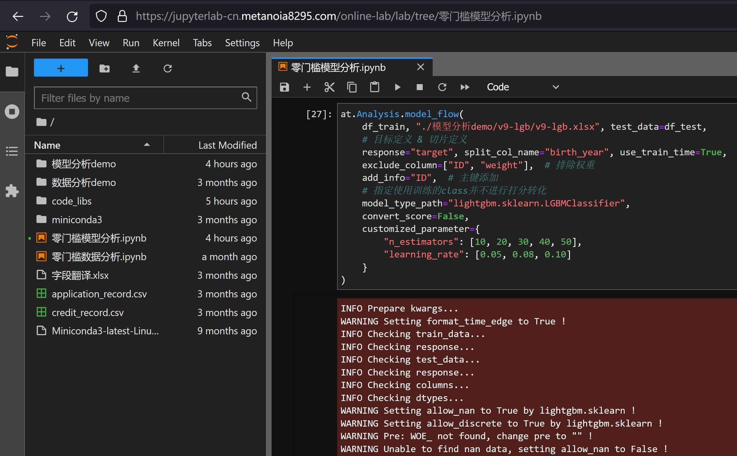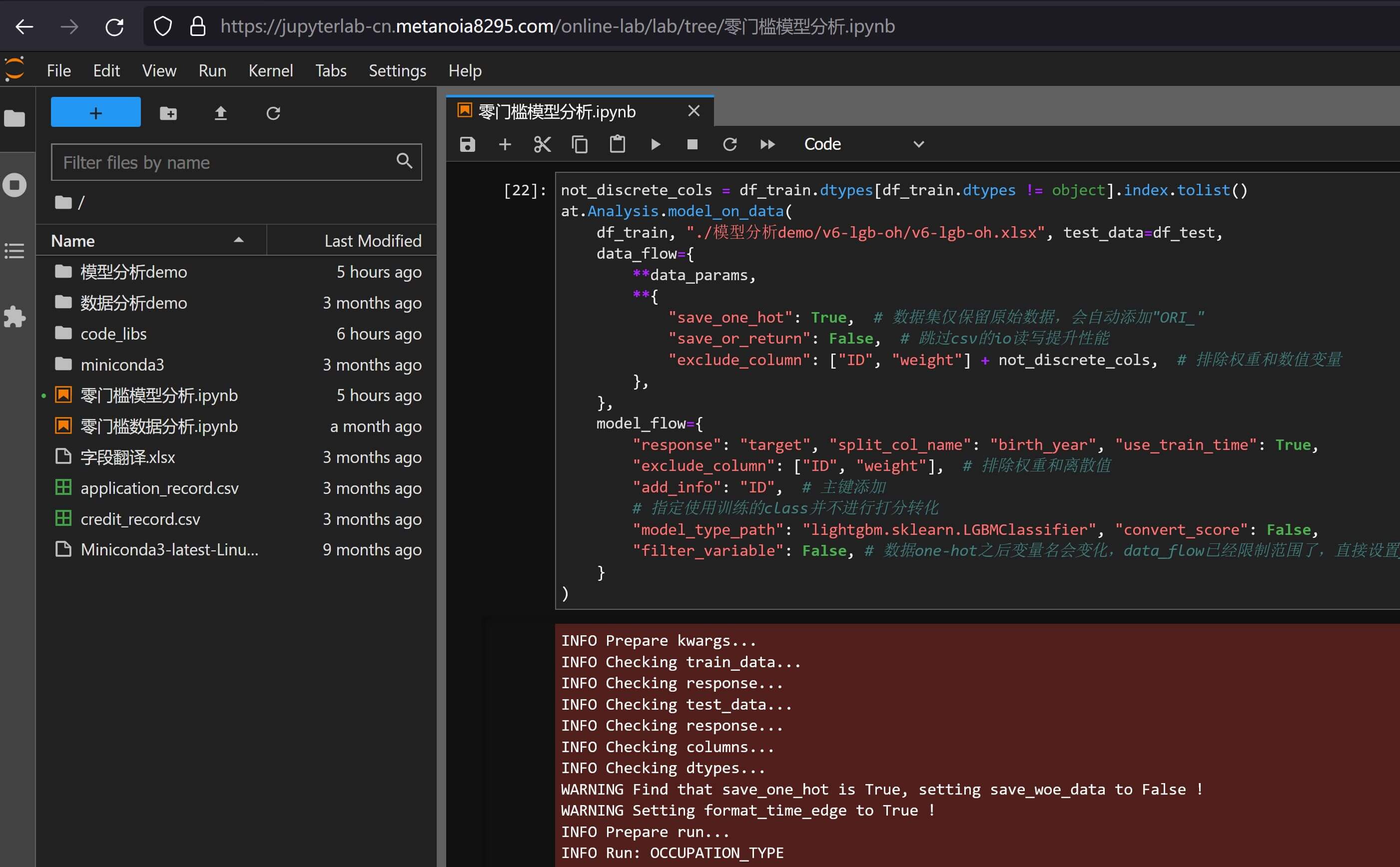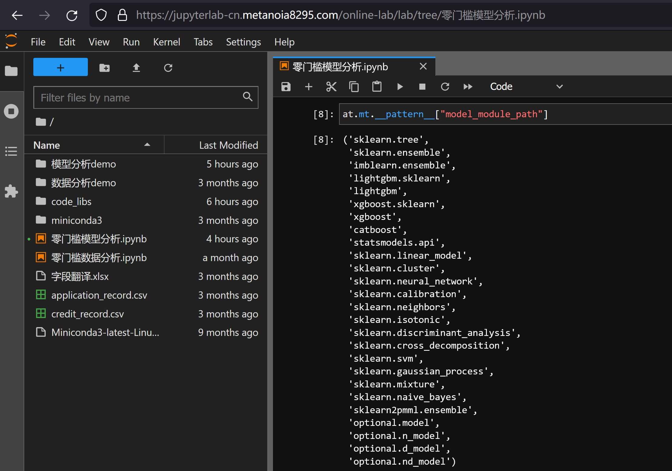 建模案例可见本节1.4 案例展示中的:1.4.1 评分卡建模1.4.2 机器学习建模,另外,写这一篇章时升级了jupyterlab的环境,启用了新的cdn并使用nginx路径分流,所以本文的截图中看到的web路径会和上一章不一样