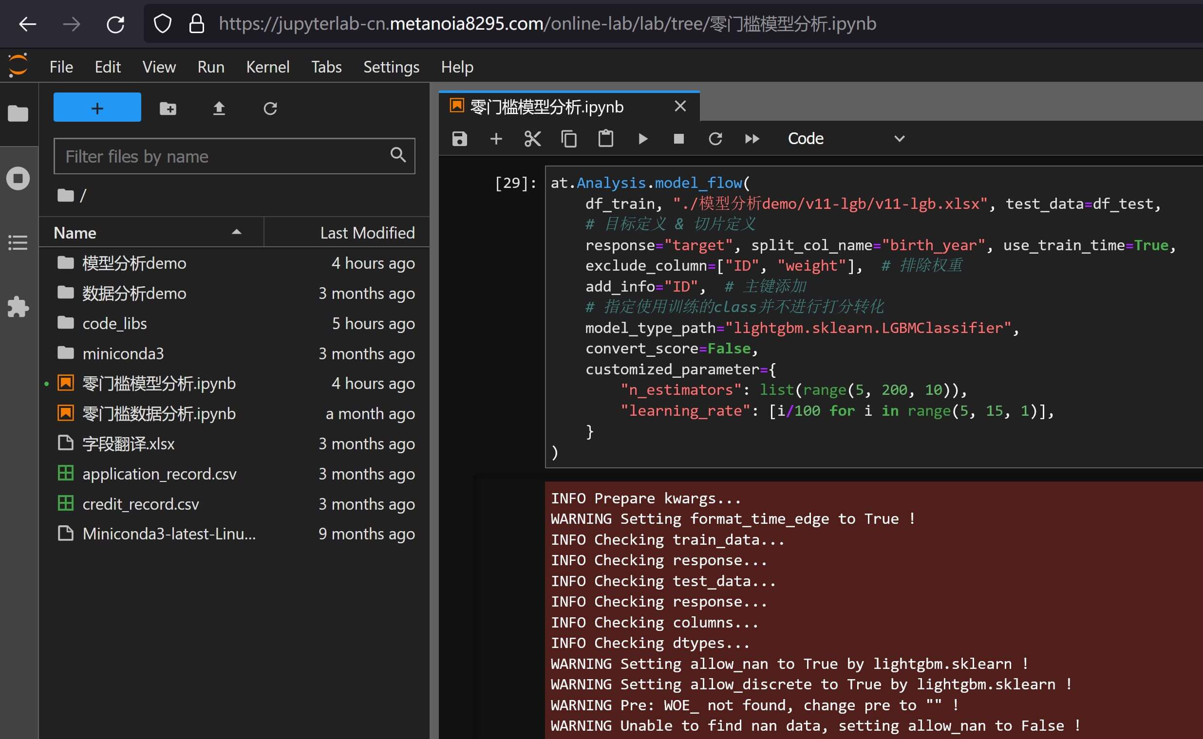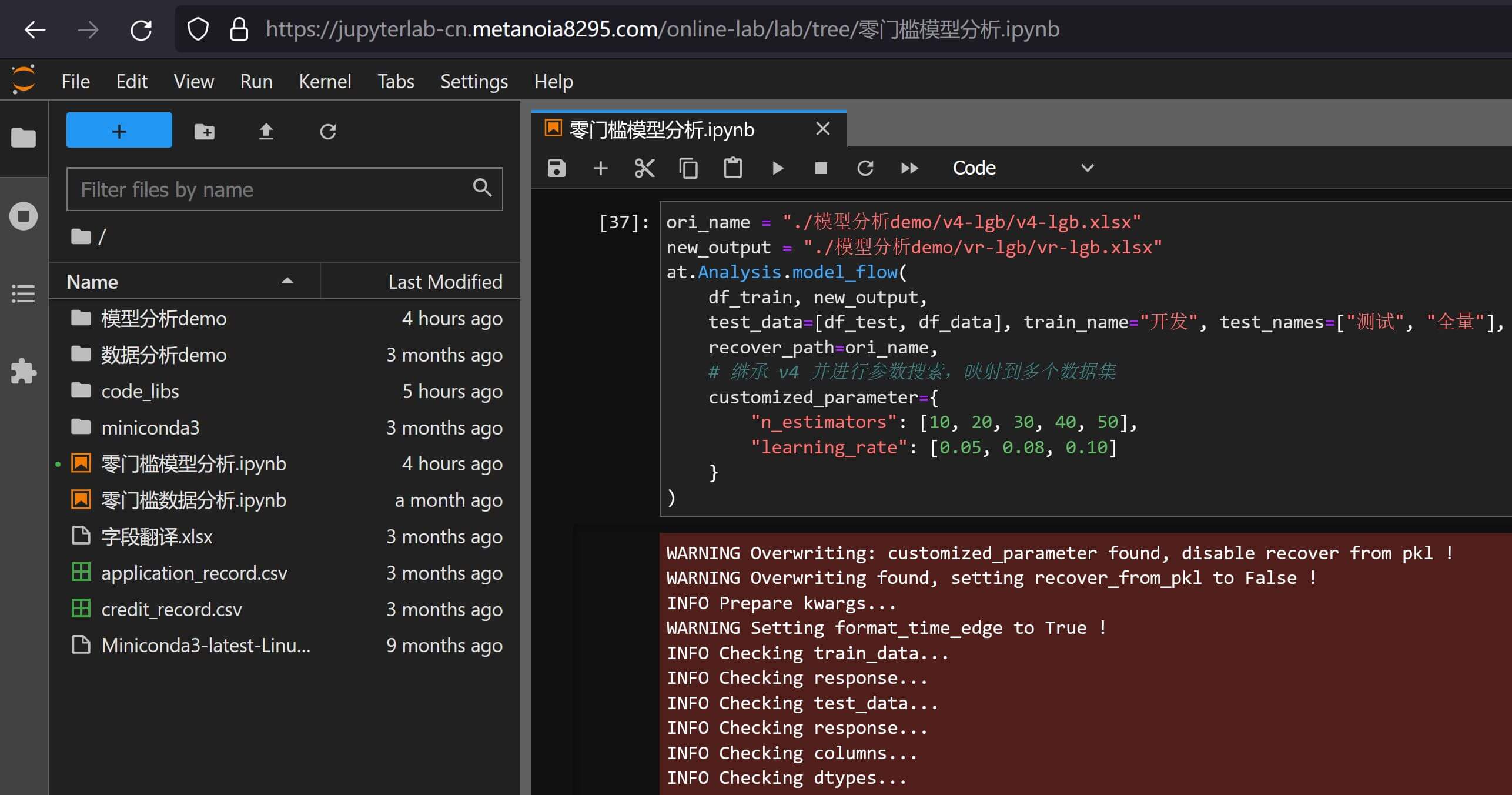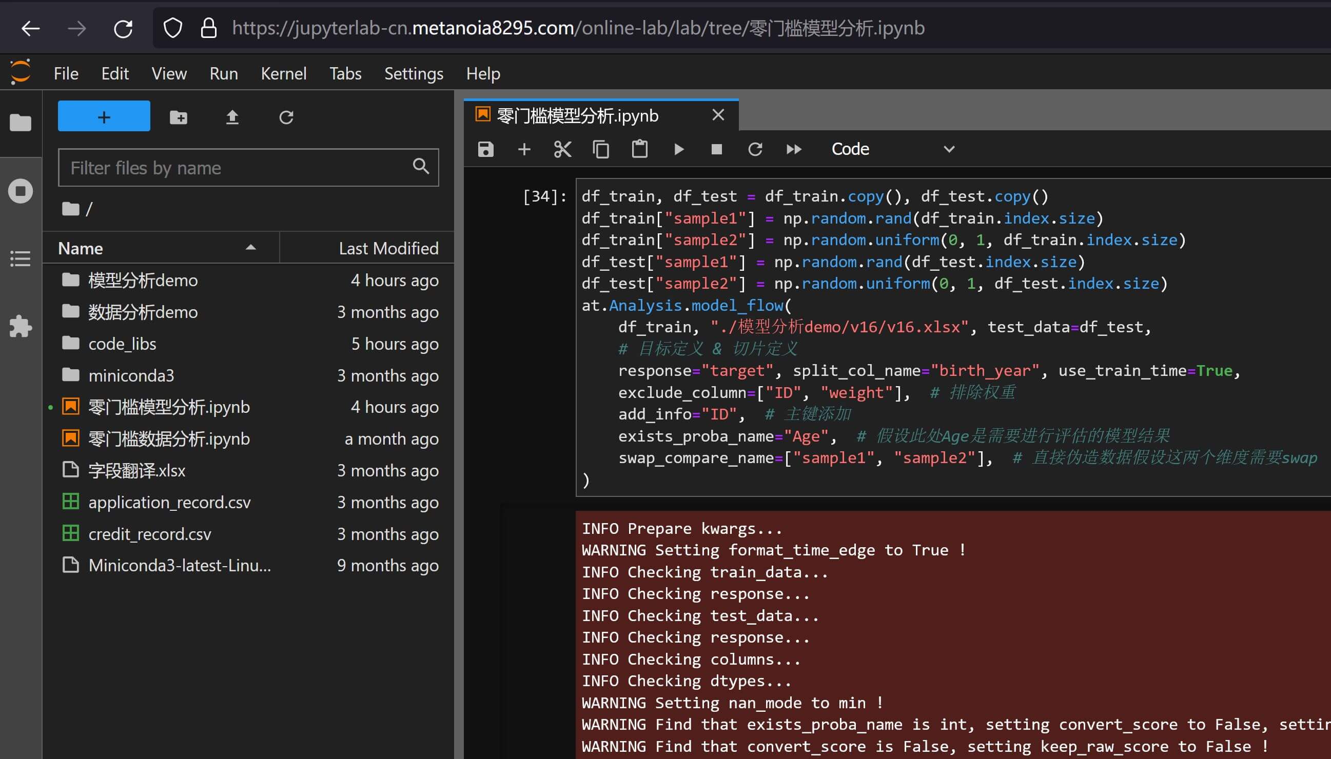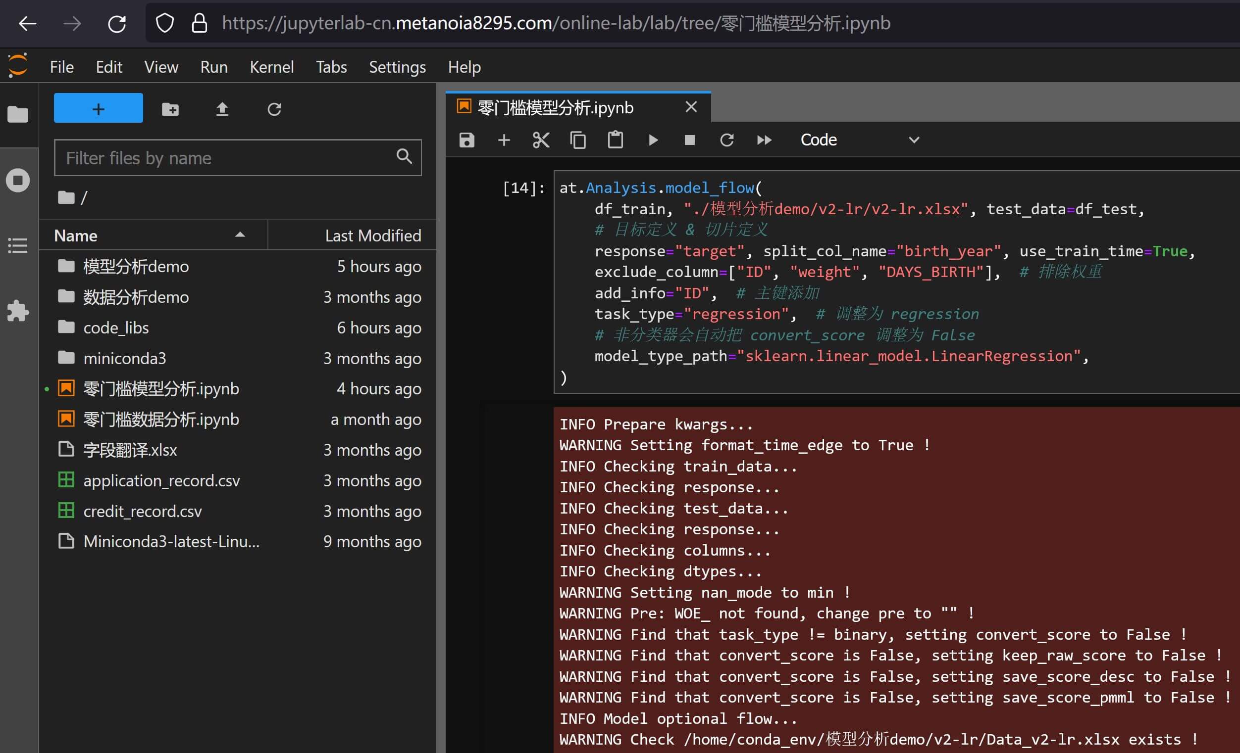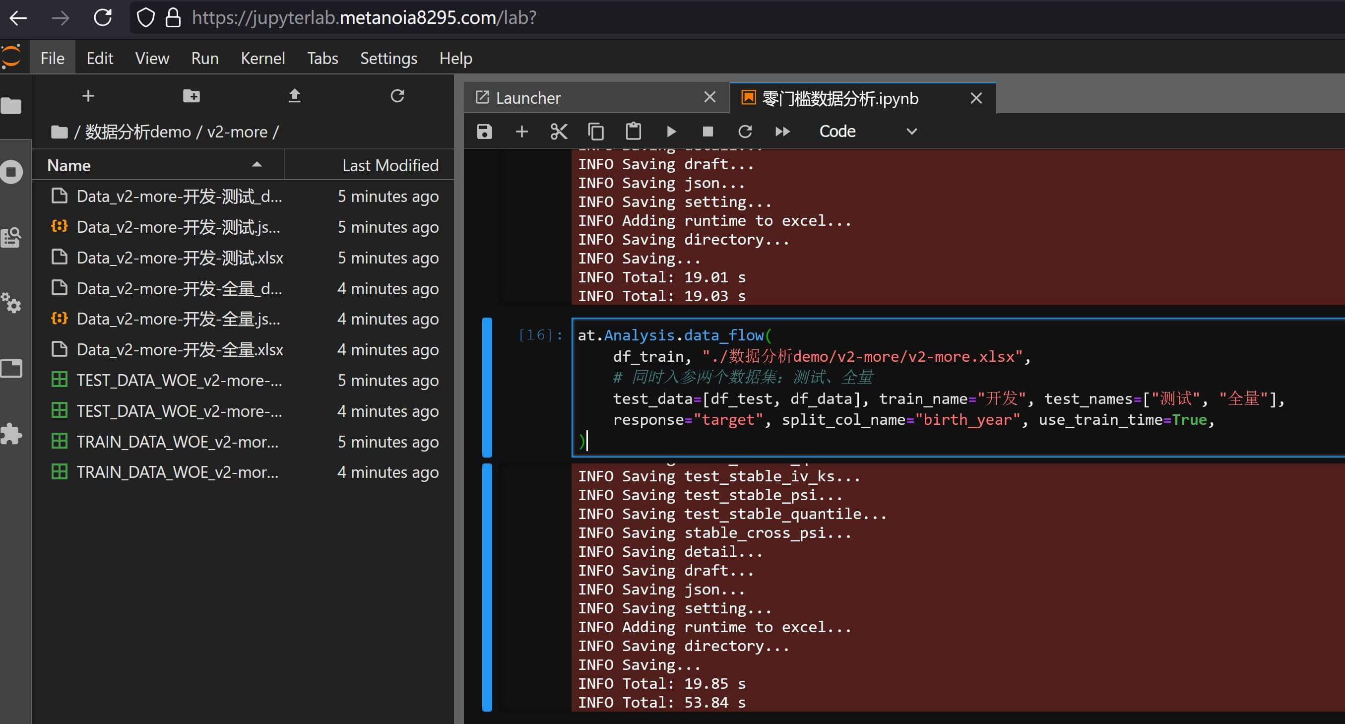 建模案例可见本节1.4 案例展示中的:1.4.1 评分卡建模1.4.2 机器学习建模,另外,写这一篇章时升级了jupyterlab的环境,启用了新的cdn并使用nginx路径分流,所以本文的截图中看到的web路径会和上一章不一样