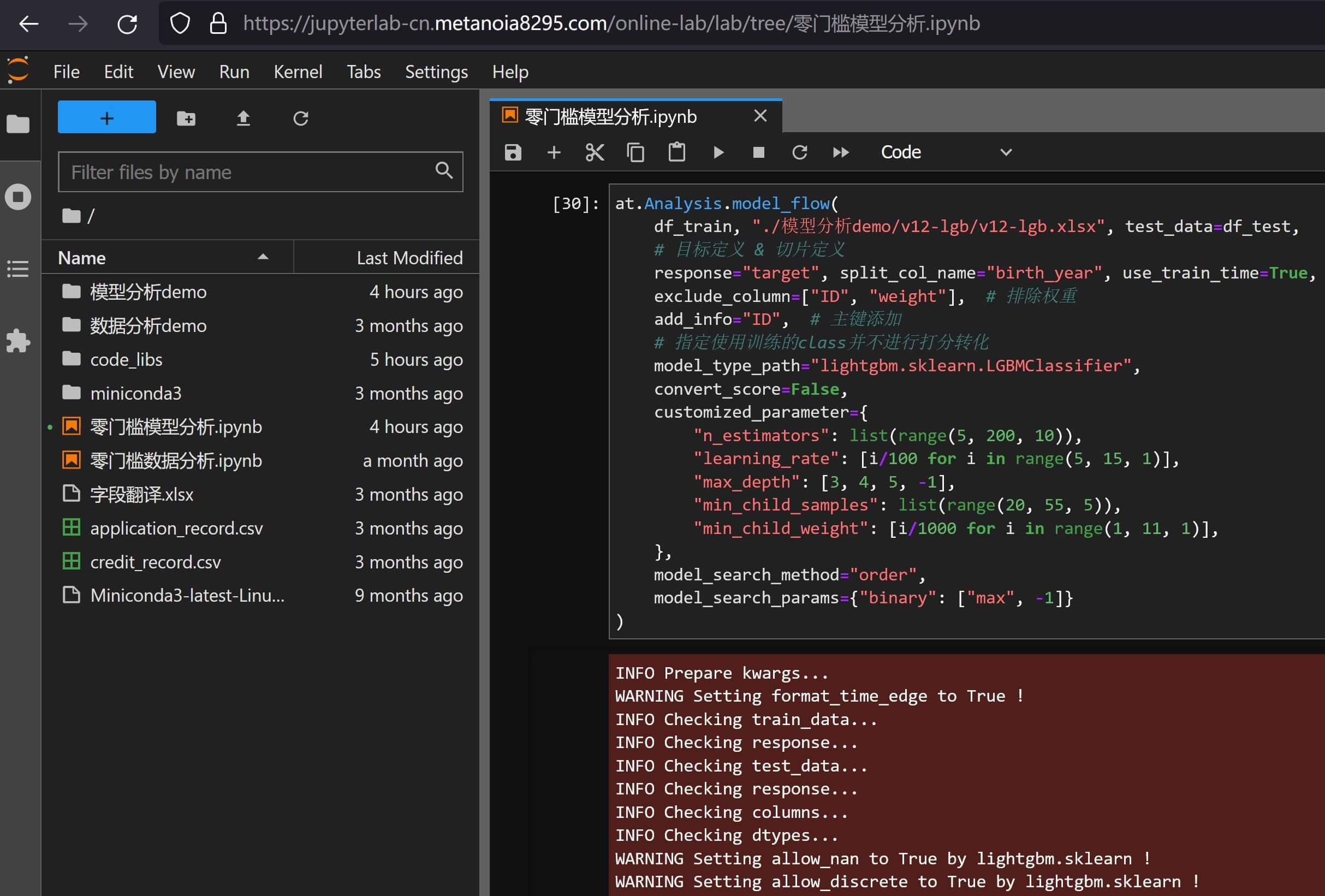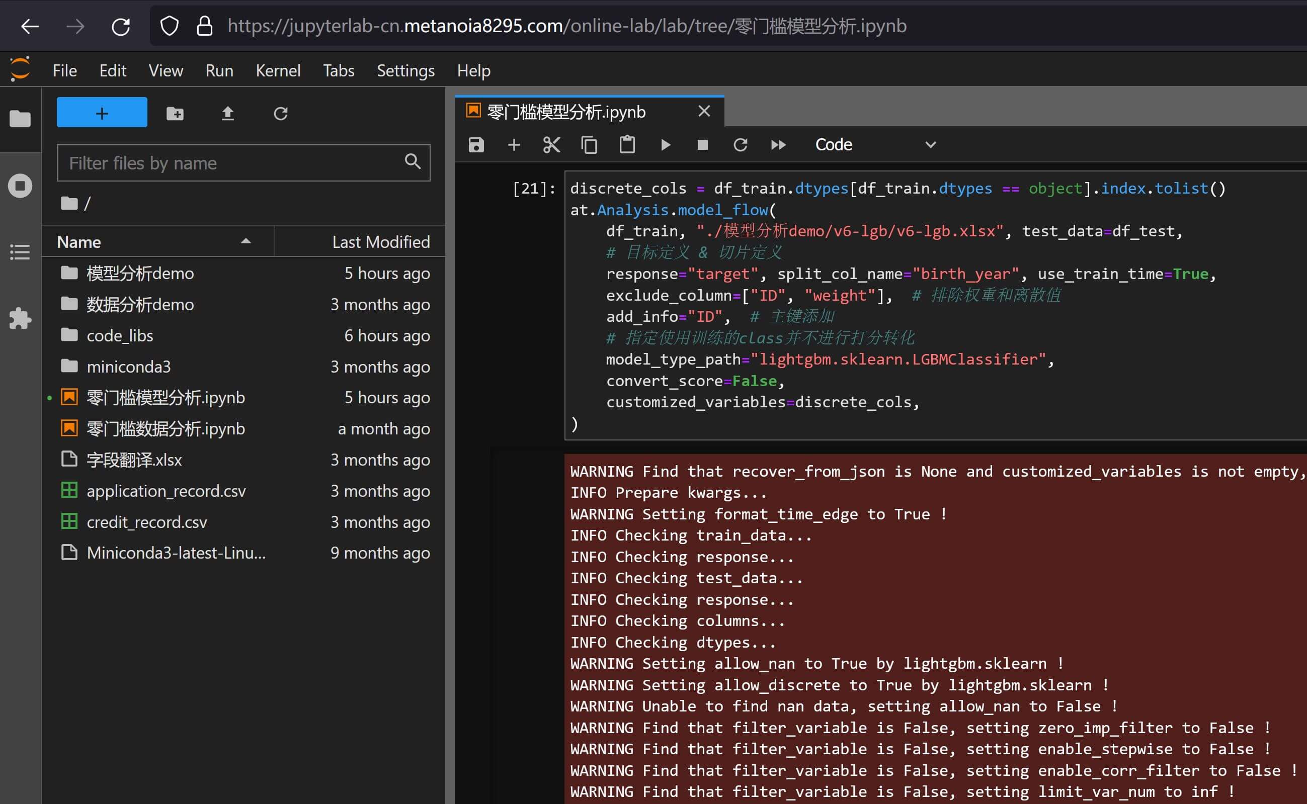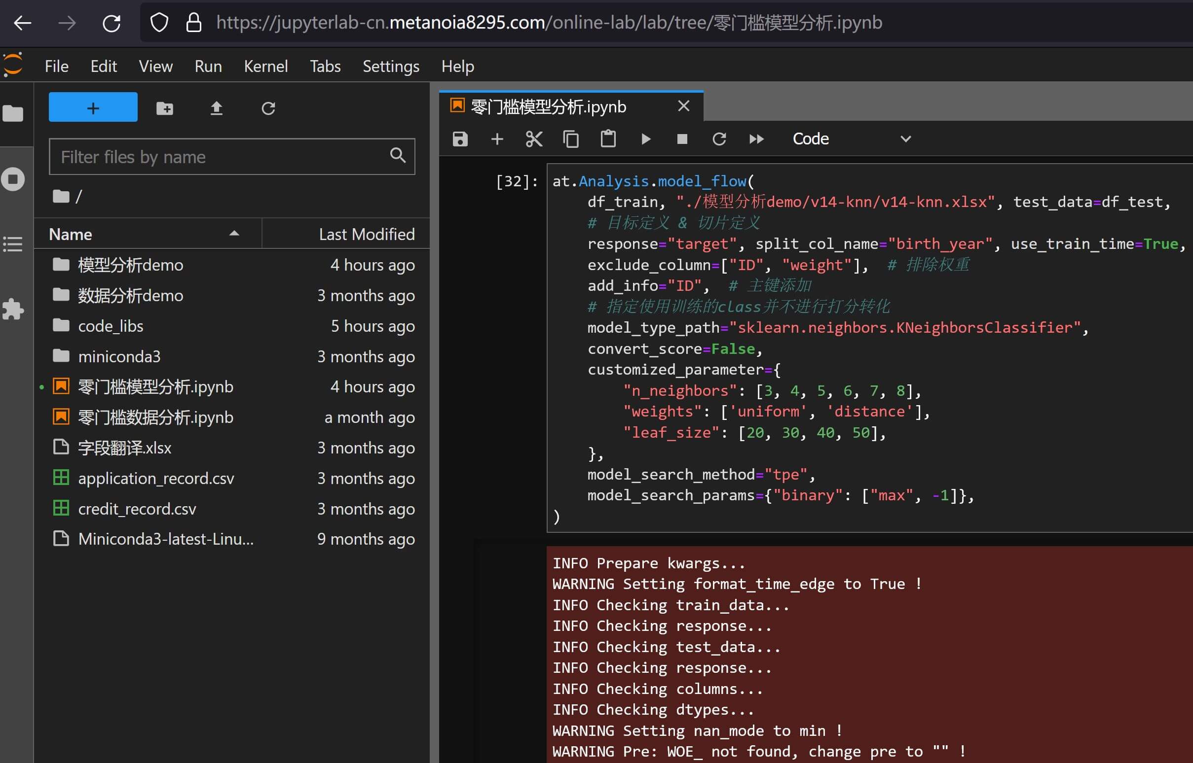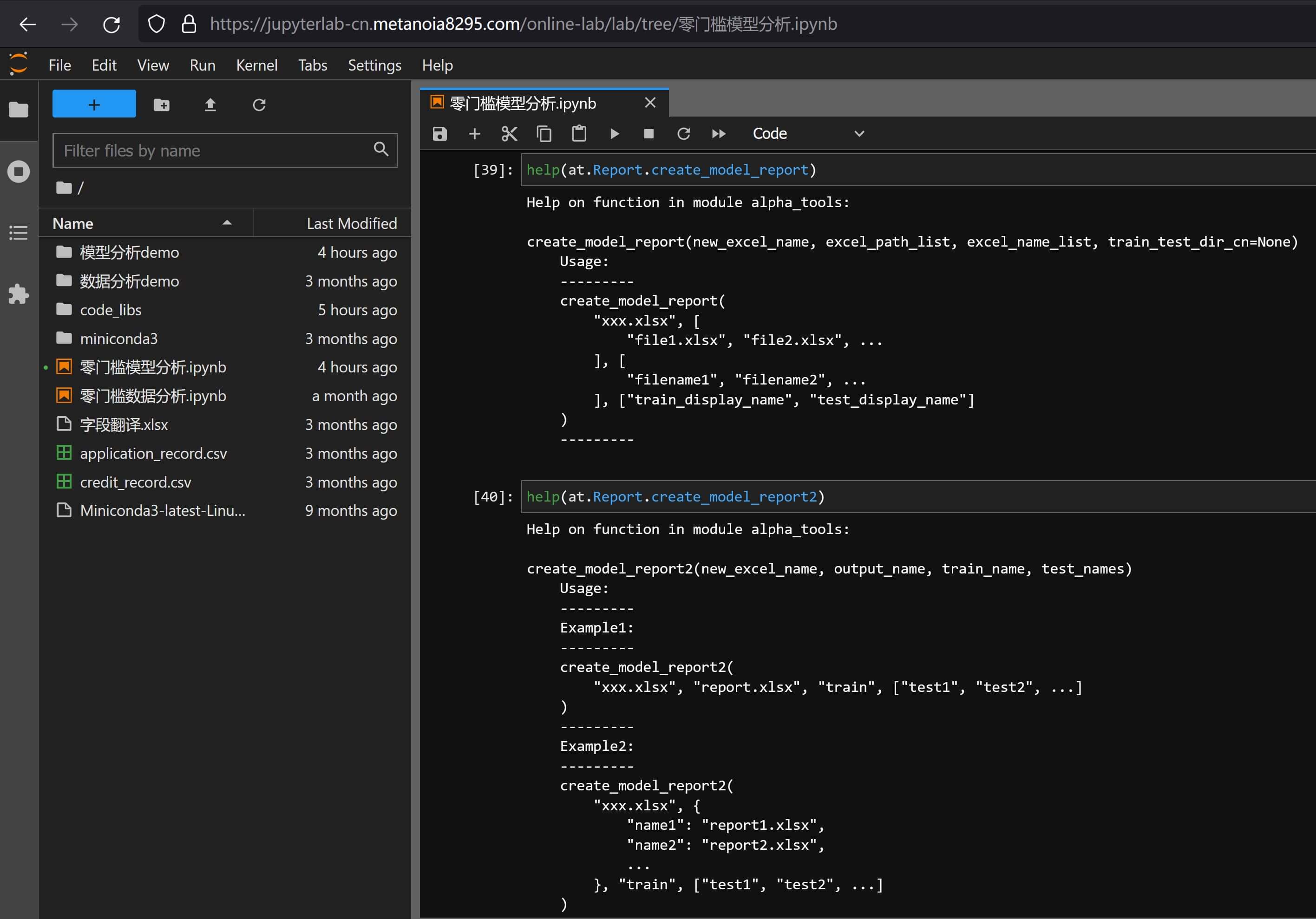 建模案例可见本节1.4 案例展示中的:1.4.1 评分卡建模1.4.2 机器学习建模,另外,写这一篇章时升级了jupyterlab的环境,启用了新的cdn并使用nginx路径分流,所以本文的截图中看到的web路径会和上一章不一样