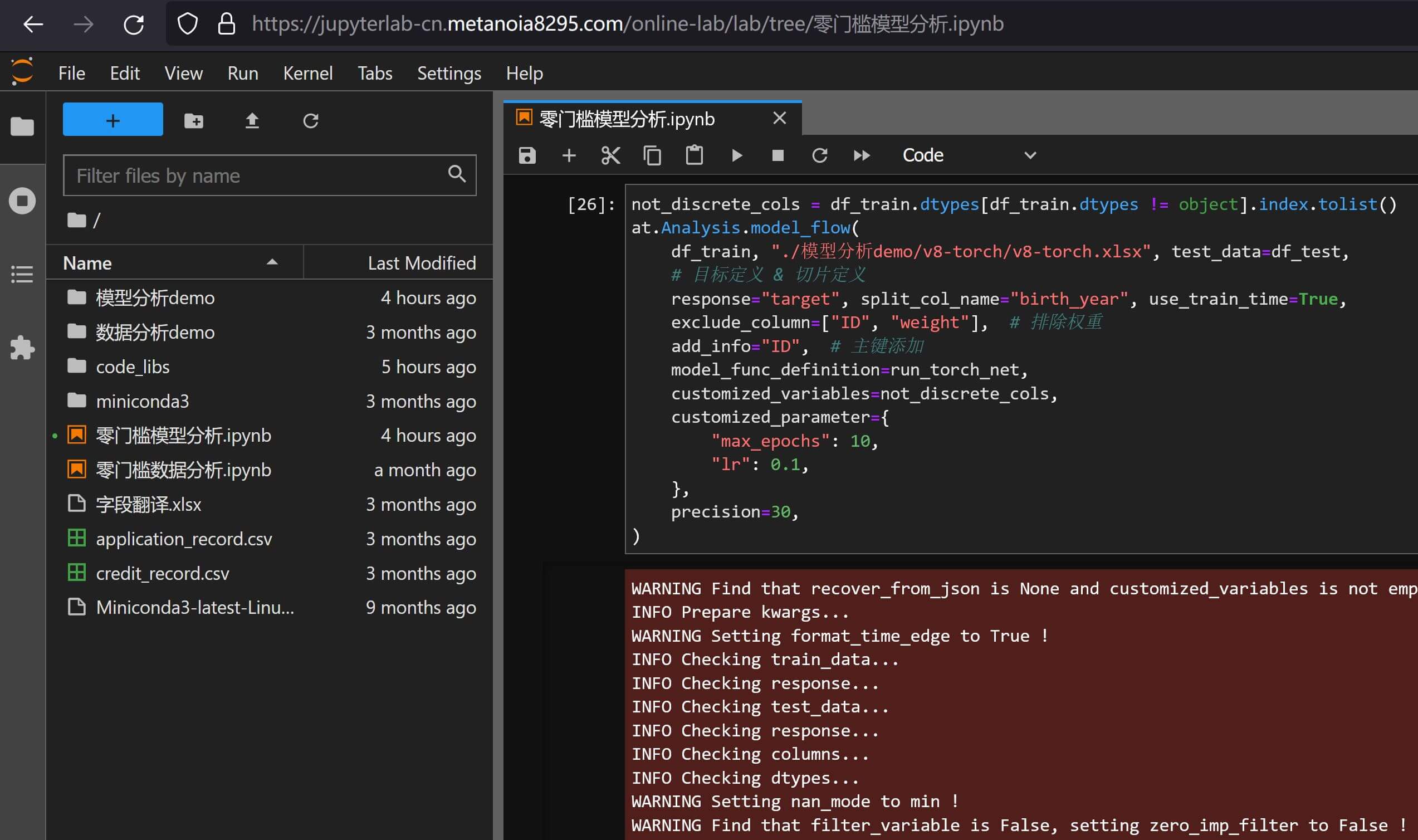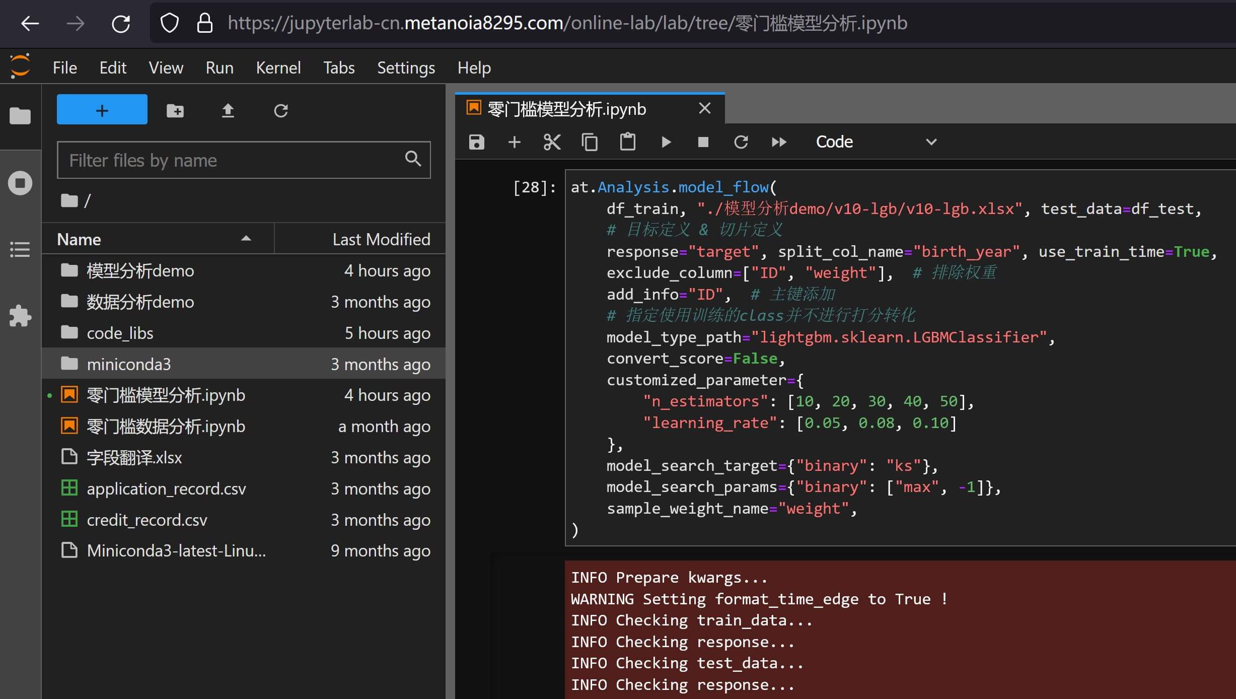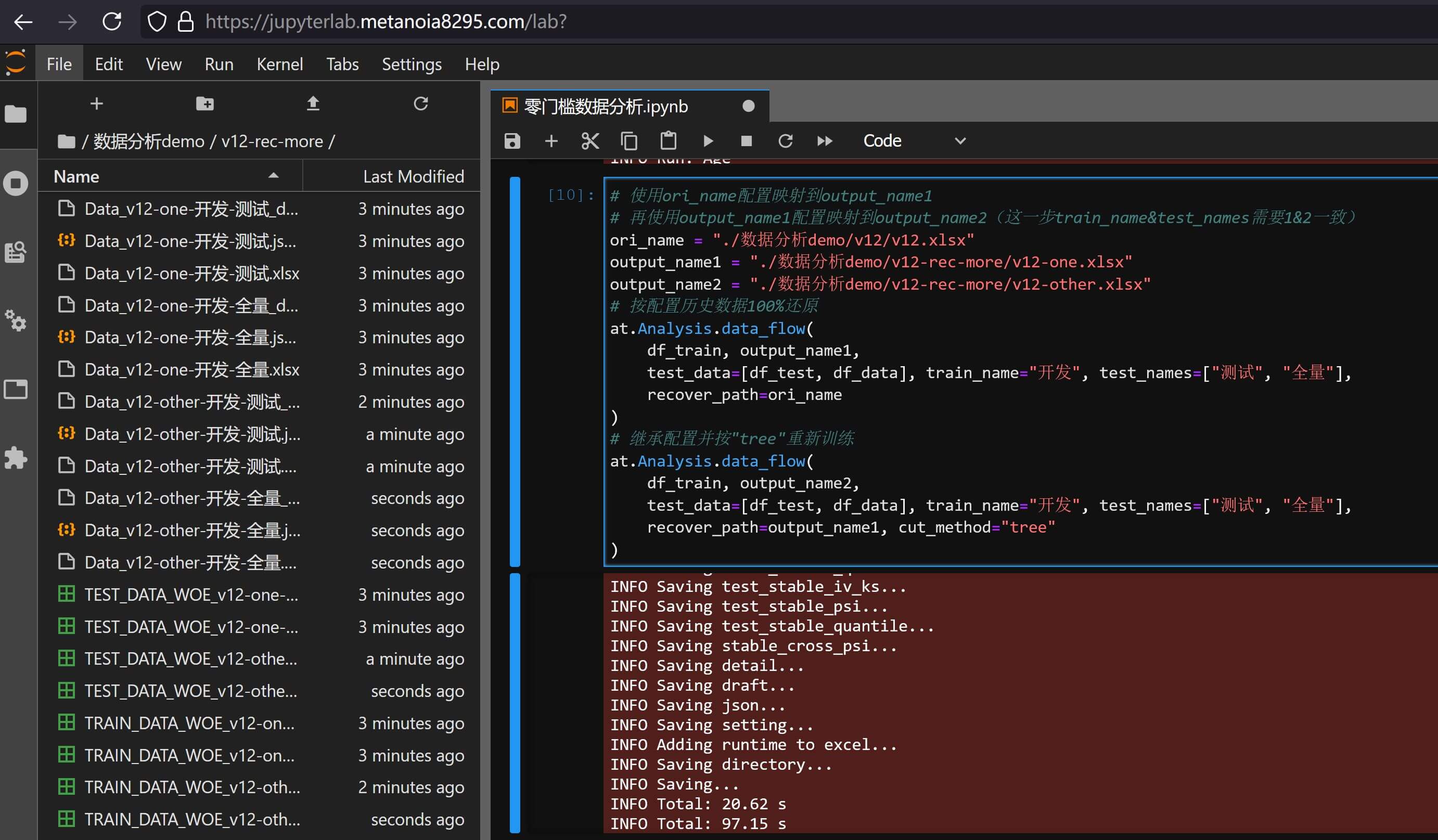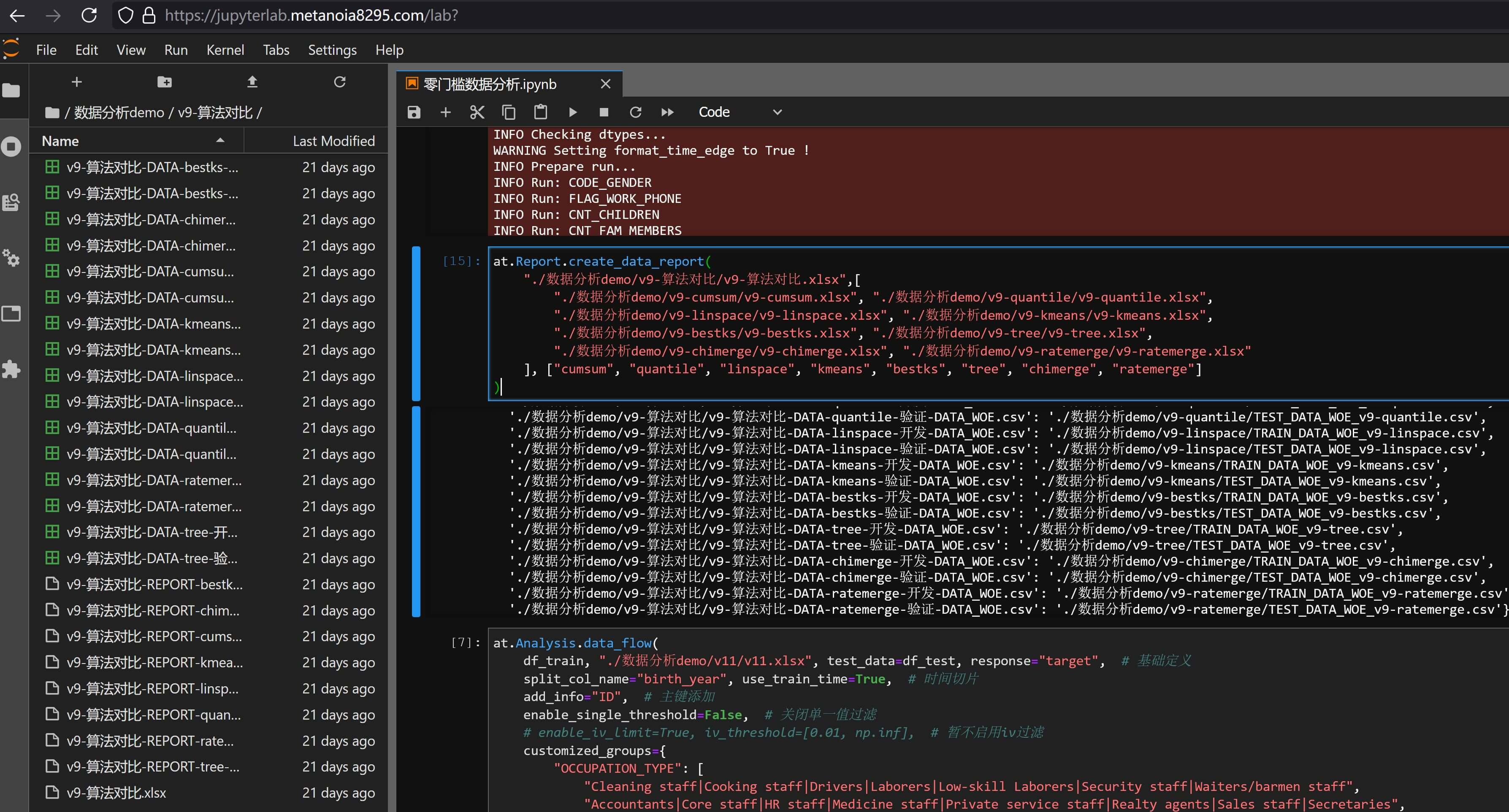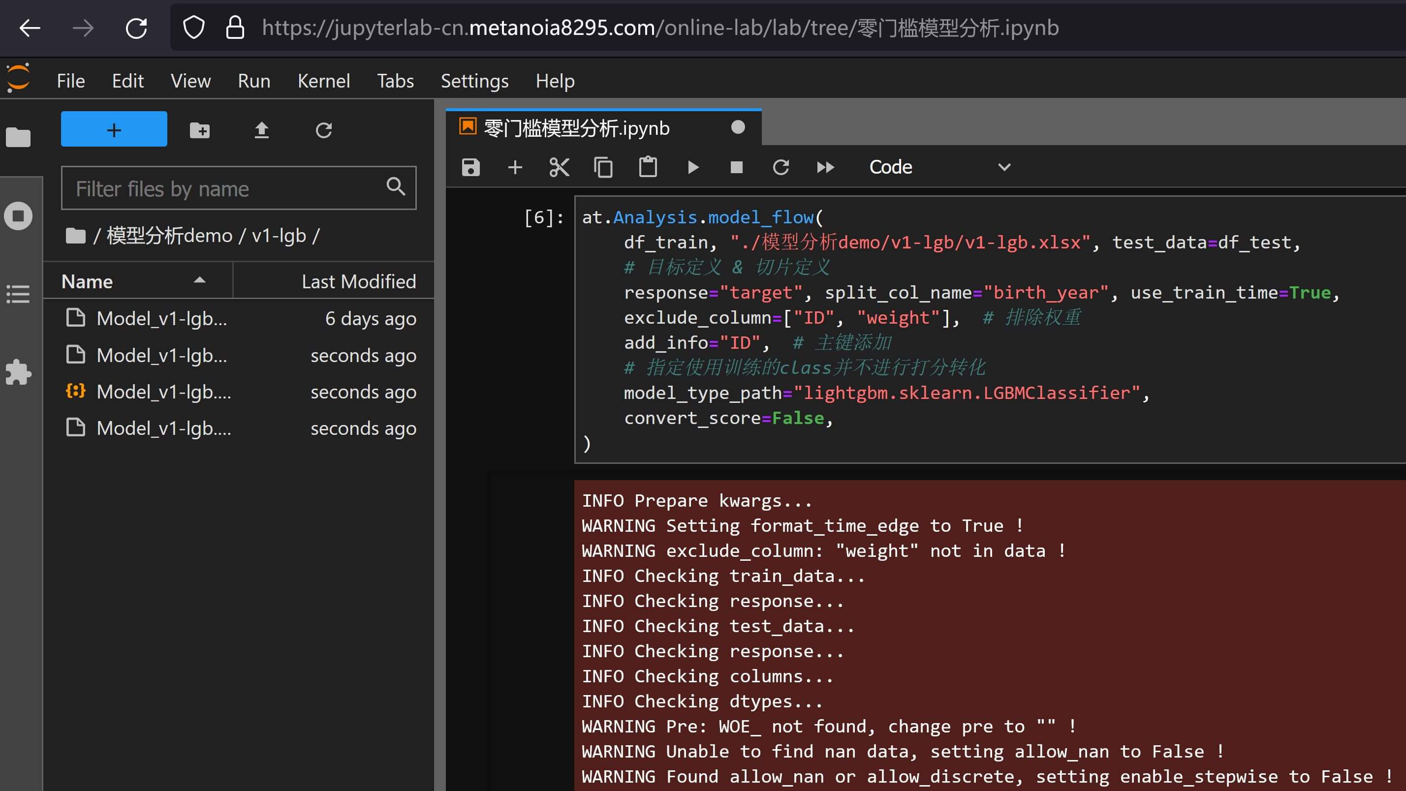 建模案例可见本节1.4 案例展示中的:1.4.1 评分卡建模1.4.2 机器学习建模,另外,写这一篇章时升级了jupyterlab的环境,启用了新的cdn并使用nginx路径分流,所以本文的截图中看到的web路径会和上一章不一样
