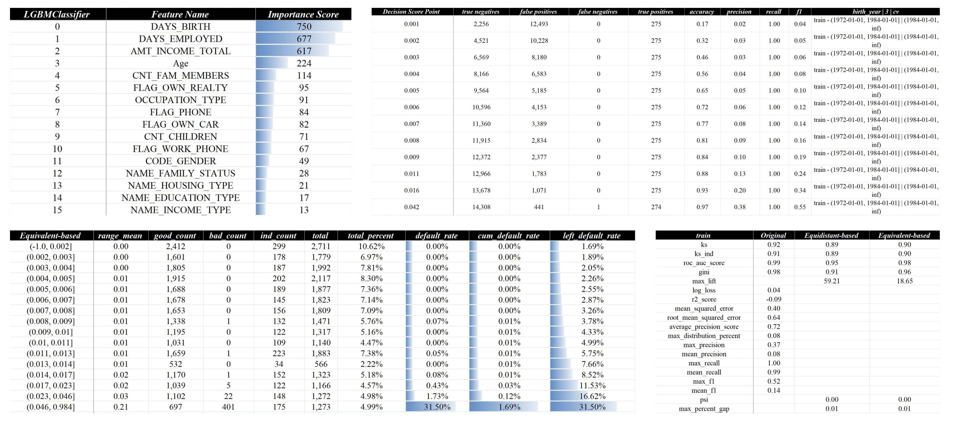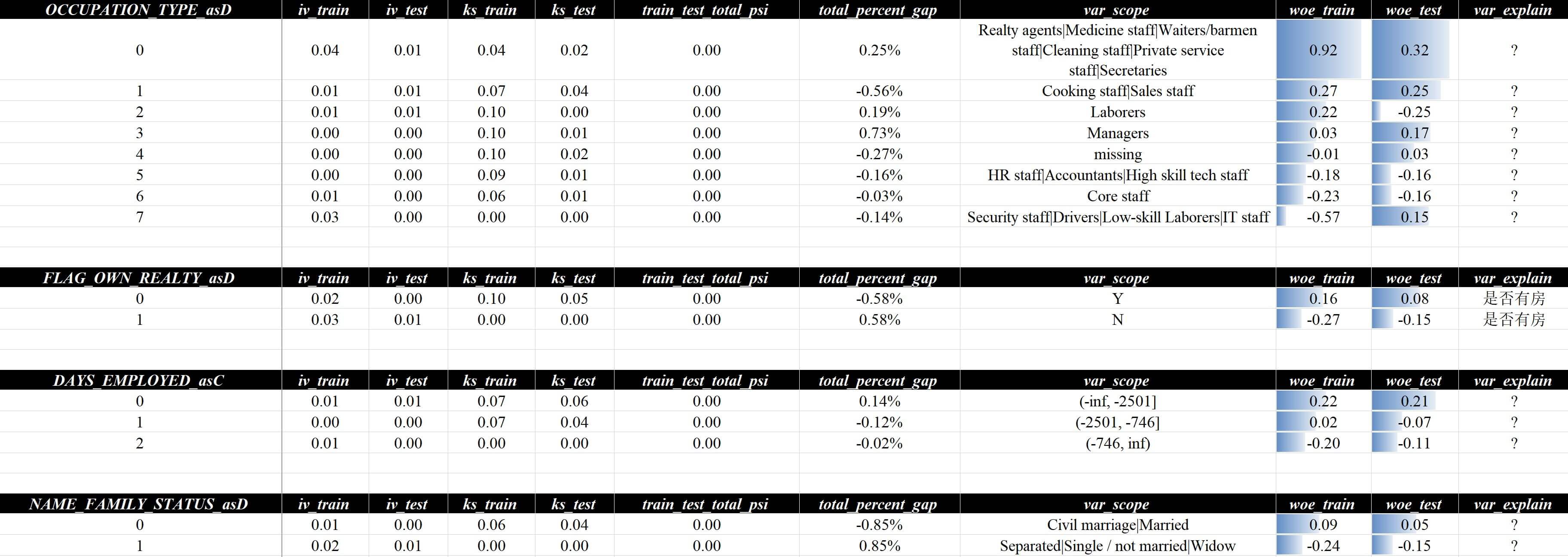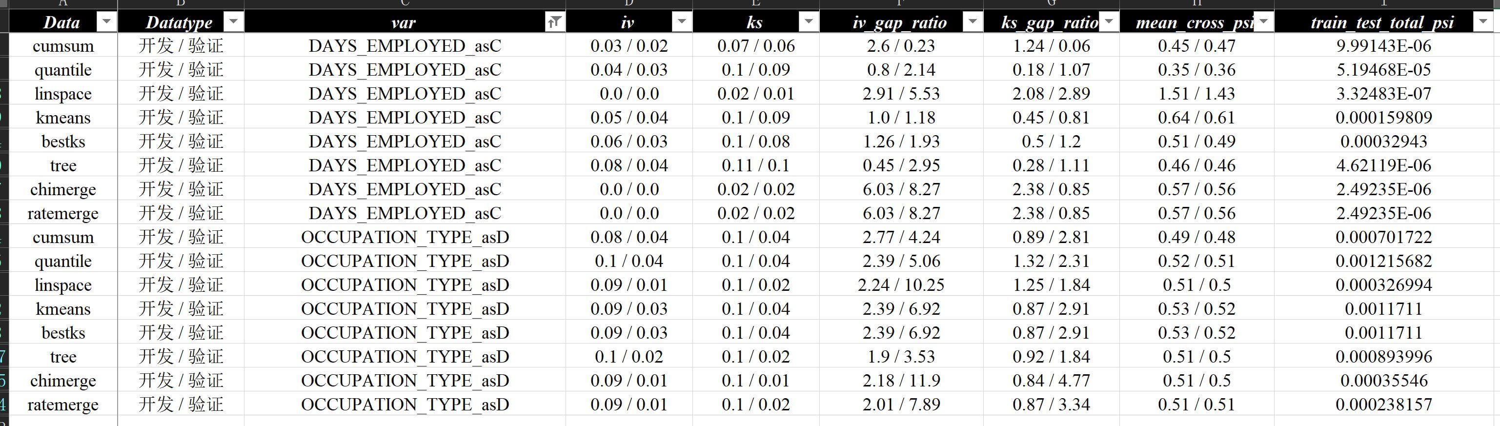 最后得到的效果和对应的分析,也在5.2 分箱算法和生成这节中有所展示: