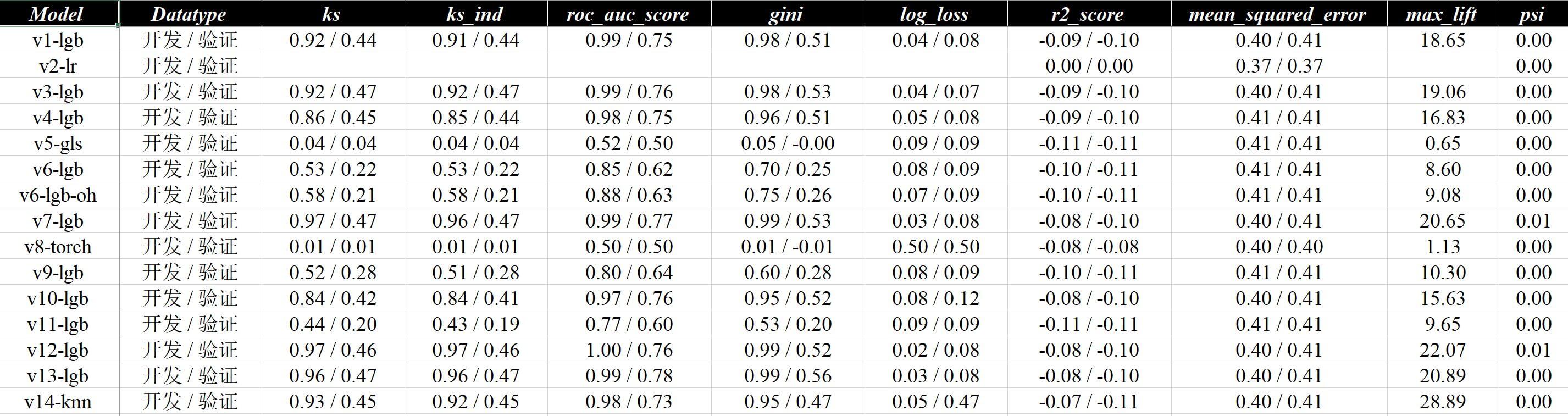 从合并以后的模型对比文件vm-模型对比.xlsx来看,