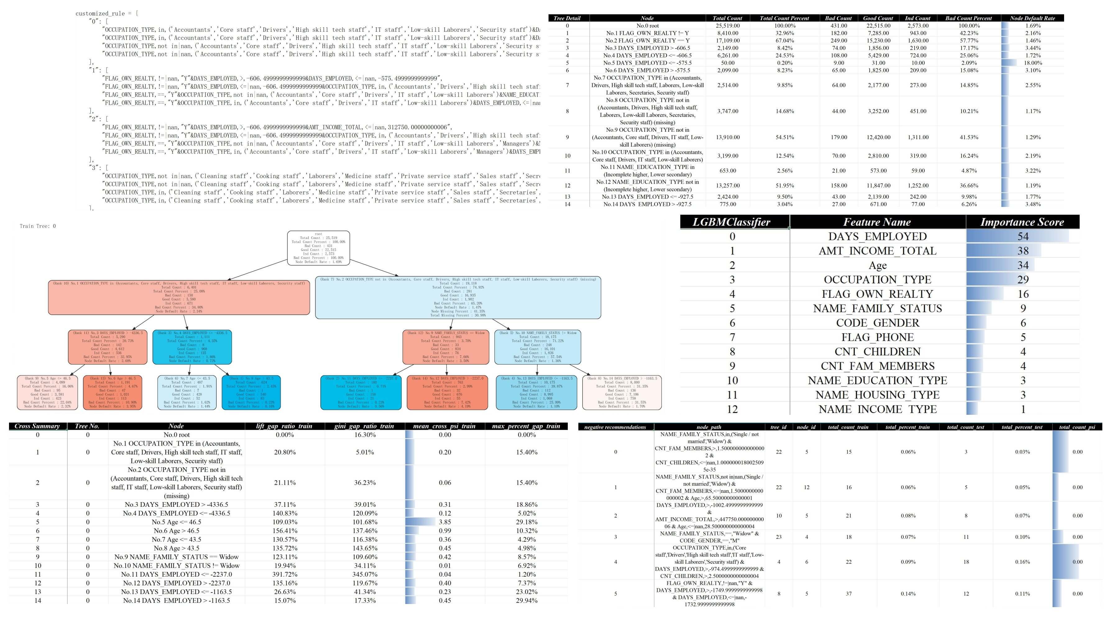 lightgbm规则搜索样例可得策略分析报告v1-lgb.xlsx,其中包含推荐的策略、树模型结构、树模型部署文件等,另外还提供可视化文档策略分析报告v1-lgb.pdf,其中包含详细的树结构绘图,那为什么需要模型策略化呢?