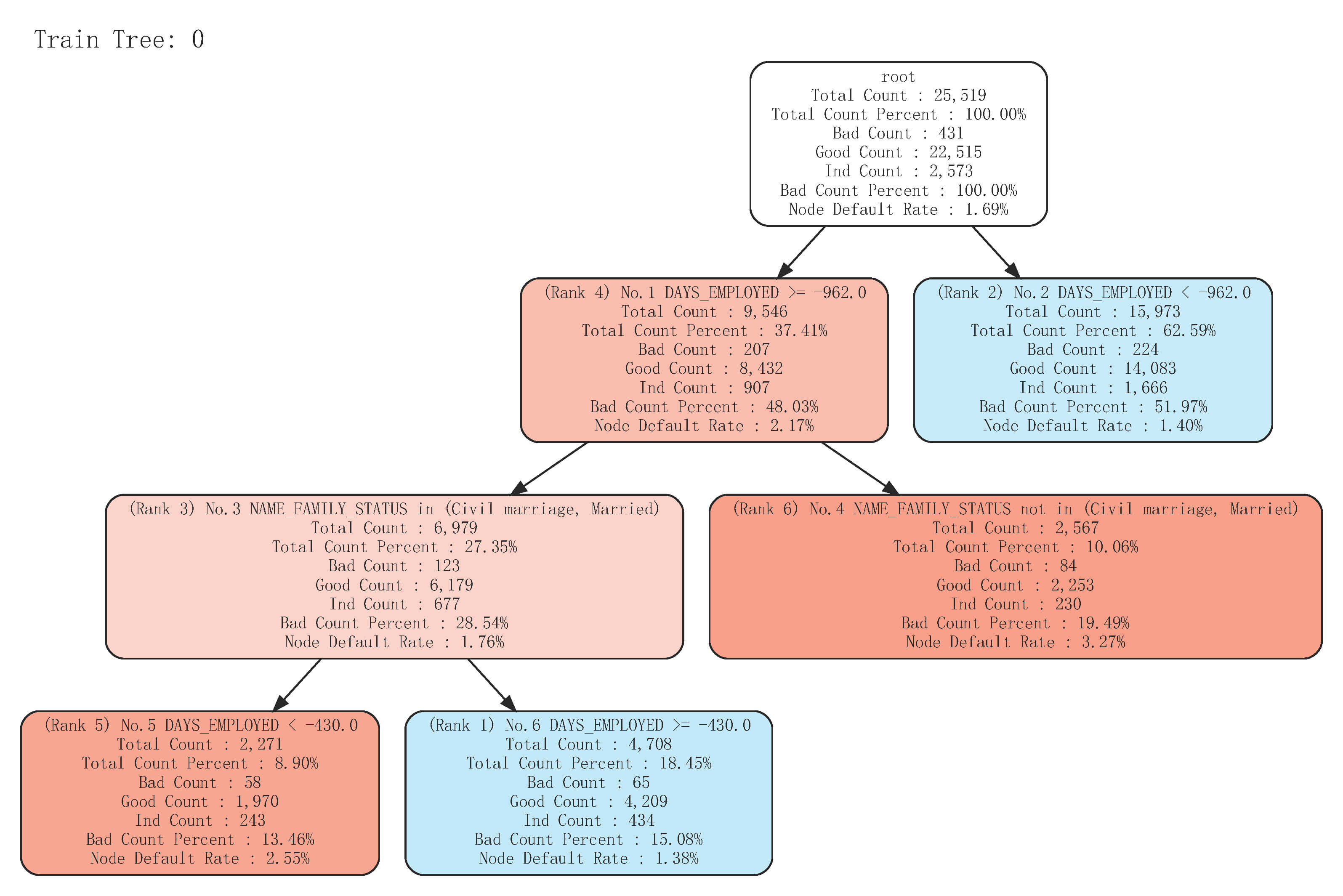 - 最大化数据效果:首先树模型能融合多变量效果,其次梯度提升等算法的思想完美符合策略增量挖掘的需求,能很好的捕获数据之间的弱关联,也能基于已有的模型分挖掘互补策略,最大化数据效果,且支持基于业务经验的校验和补充